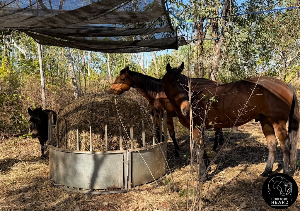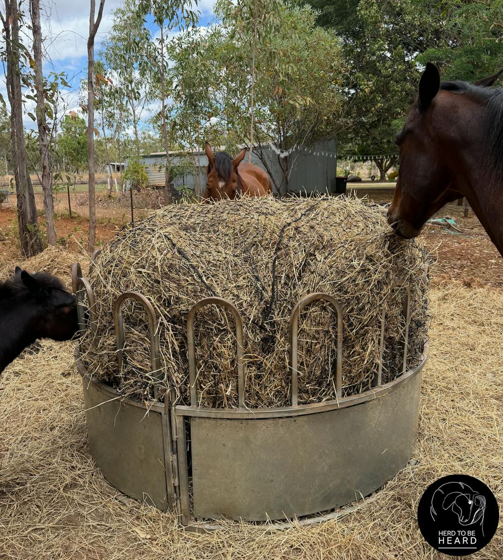 - Be cautious with shod horses and use appropriate hay rings/feeder to prevent entanglement.